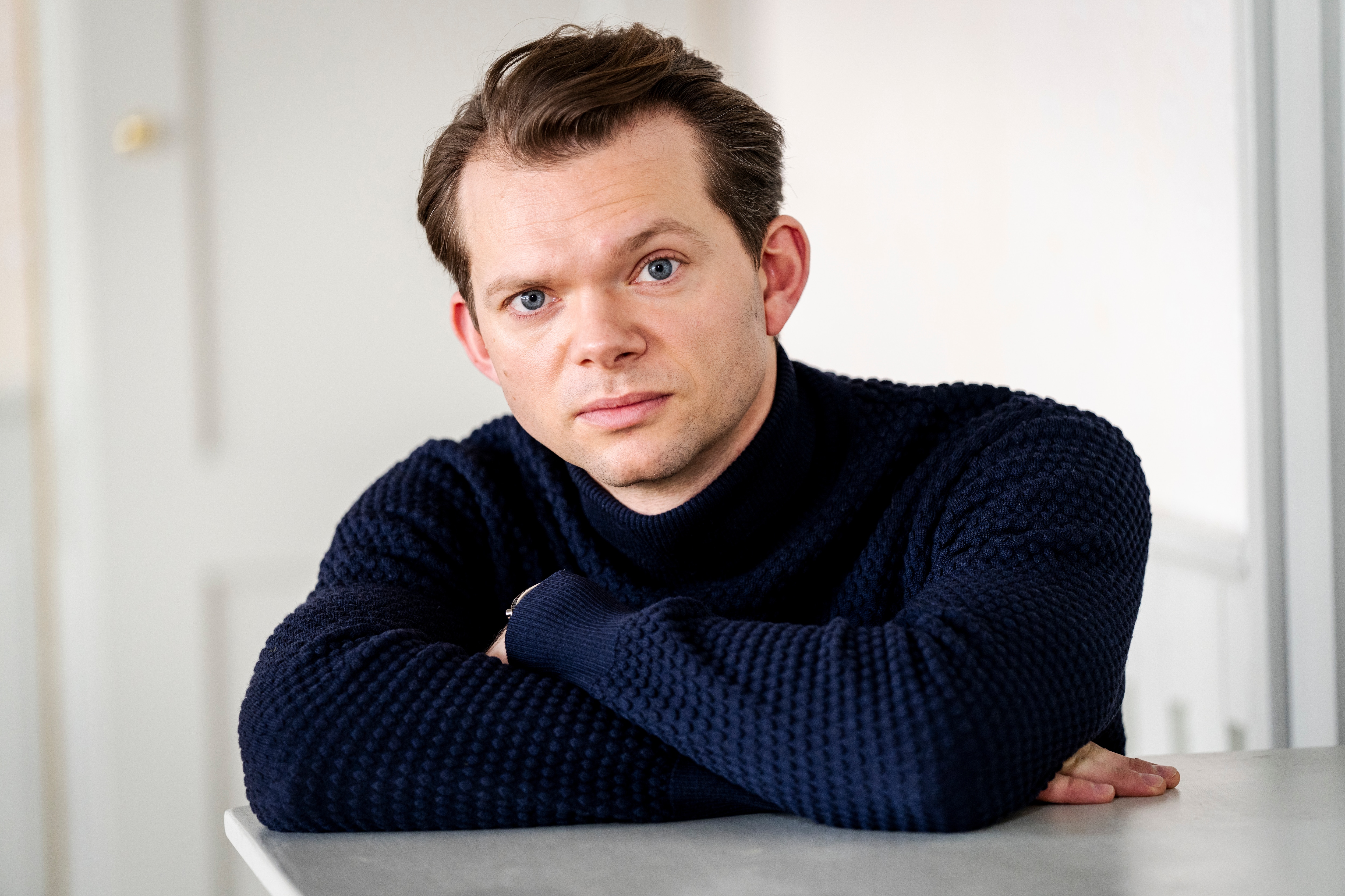 Sigurd Holmen le Dous på et pressemøde i anledning af den nye sæson af Badehotellet på TV2 i København, onsdag den 21. februar 2024. Sæsonen er den 10. og sidste i serien.. (Foto: © Ida Marie Odgaard, Ritzau Scanpix)